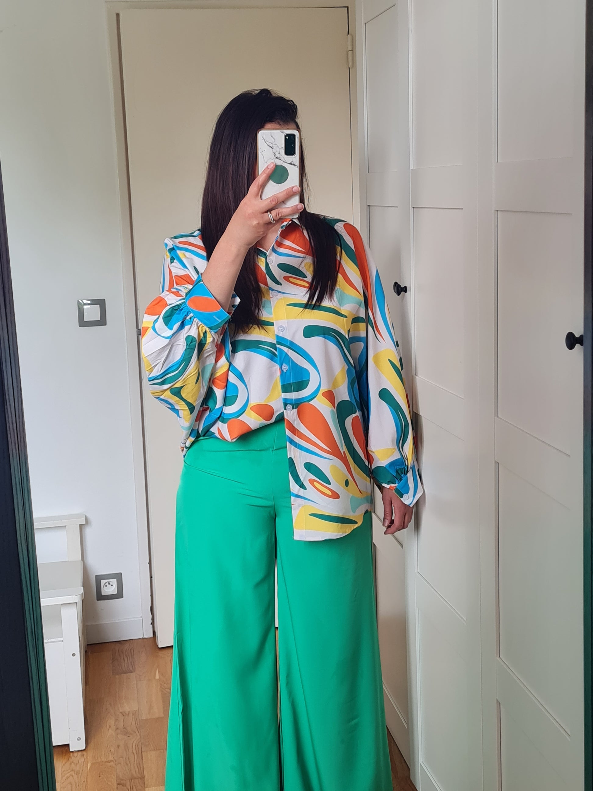 chemisier fluide avec manches larges et son pantalon fluide et large